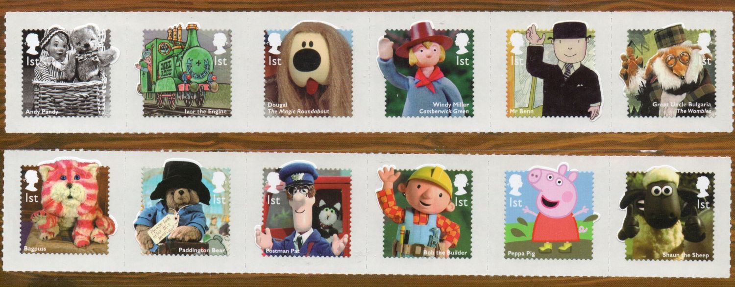 Great Britain Scott Catalogue number 3248-3259 2014 Children's Television Characters self adhesive set.Mint, fine to very fine original gum never hinged .Canadian Customers - I pay the GST/HST for youMember Canadian Stamp Dealers Association