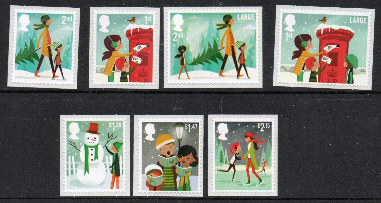 Great Britain Scott Catalogue number 3337-3343 2014 Christmas stamp set .Mint, fine to very fine original gum never hinged .Canadian Customers - I pay the GST/HST for youMember Canadian Stamp Dealers Association