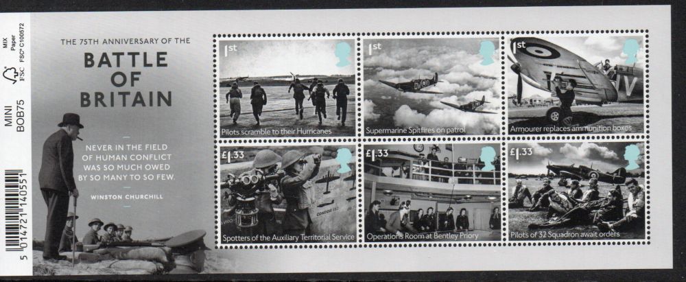 Great Britain Scott Catalogue number 3416 2015 75th Anniversary Battle of Britain stamp souvenir sheet .Mint, fine to very fine original gum never hinged .Canadian Customers - I pay the GST/HST for youMember Canadian Stamp Dealers Association