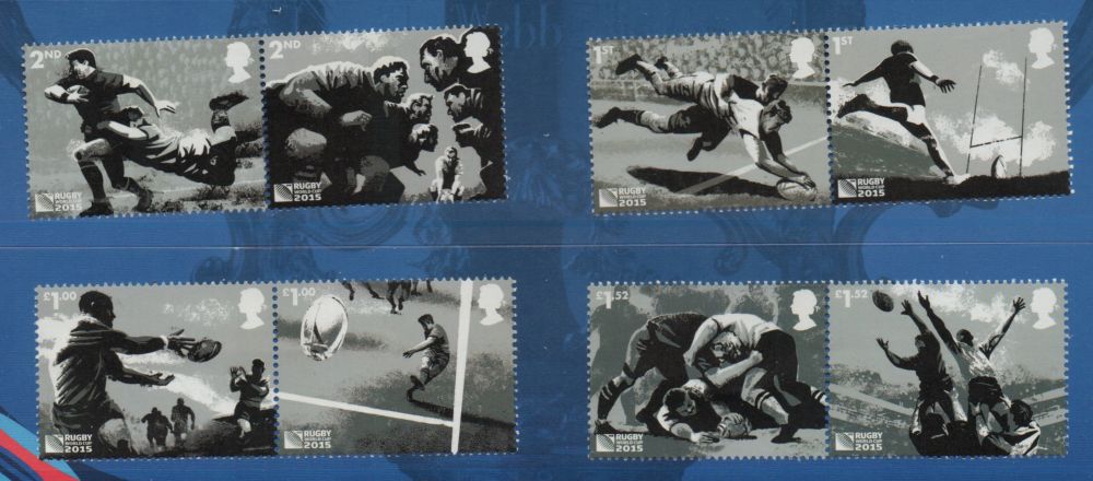 Great Britain Scott Catalogue number 3424-3432 2015 Rugby World Cup stamp set .Mint, fine to very fine original gum never hinged .Canadian Customers - I pay the GST/HST for youMember Canadian Stamp Dealers Association