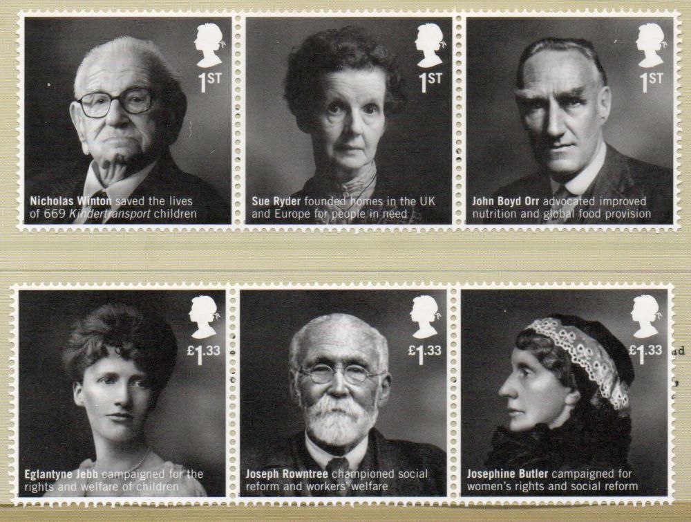Great Britain Scott Catalogue number 3479-3484 2016 Humanitarians stamp set .Mint, fine to very fine original gum never hinged .Canadian Customers - I pay the GST/HST for youMember Canadian Stamp Dealers Association