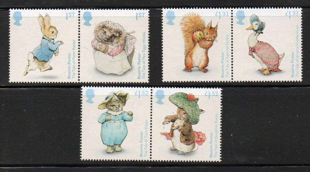 Great Britain Scott Catalogue number 3521-3526 2016 Beatrix Potter Characters stamp set .Mint, fine to very fine original gum never hinged .Canadian Customers - I pay the GST/HST for youMember Canadian Stamp Dealers Association