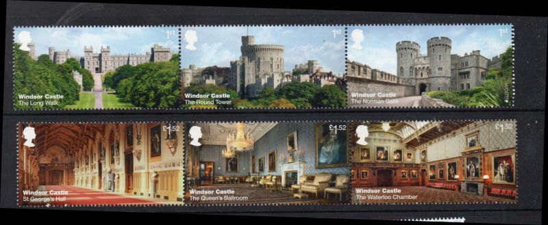 Great Britain Scott Catalogue number 3582-3587 2017 Windsor Castle stamp set.
