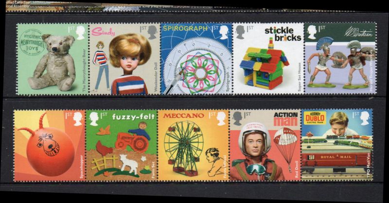 Great Britain Scott Catalogue number 3638-3647 2017 Toys stamp set.