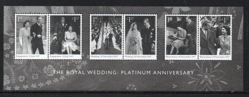 Great Britain Scott Catalogue number 3678 2017 Platinum Wedding Anniversary QEI & Prince Philip stamp souvenir sheet.