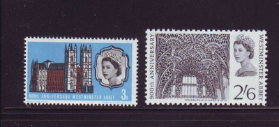 Great Briatin Scott Catalogue number 452-453 1966 900th Anniversary Westminster Abbey stamp set .Mint, fine to very fine, original gum never hinged .Canadian Customers - I pay the GST/HST for you