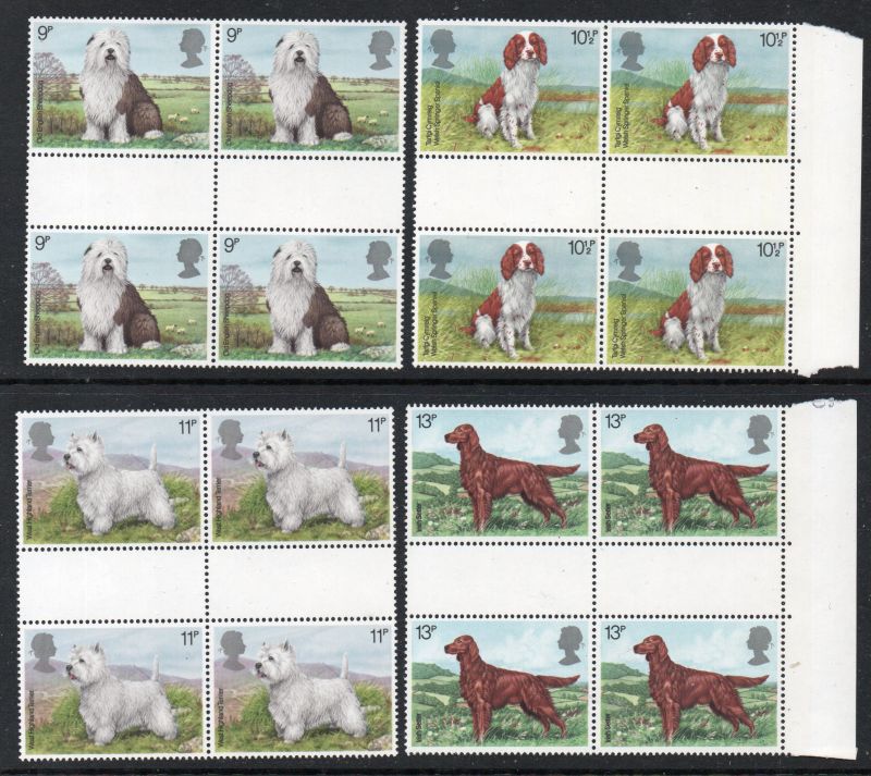 Great Britain Scott Catalogue number 851-854 1979 Dogs stamp set in blocks of 4.Mint, fine to very fine, original gum never hinged .Member Canadian Stamp Dealers Association .Free Shipping on purchases over $50 going to North America .Canadian Customers - I pay the GST/HST on your purchases from me .21-8-147.jpg