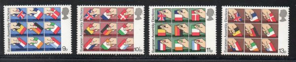 Great Britain Scott Catalogue number 859-862 1979 European Parliament stamp set .Mint, fine to very fine, original gum never hinged.Member Canadian Stamp Dealers Association .Canadian Customers - I pay the GST/HST on your purchases from me .