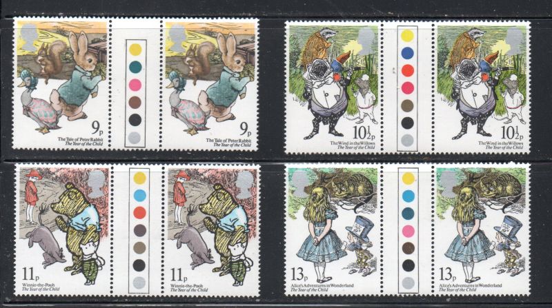 Great Britain Scott Catalogue number 867-870 1979 Children's Books, International Year of the Child stamp set, traffic light gutter pairs