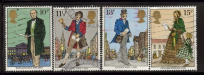 Great Britain  Scott Catalogue number 871-874 1979 Sir Rowland Hill  stamp set .Used, fine to very fine .Member Canadian Stamp Dealers Association .Free Shipping on purchases over $50 going to North America.Canadian Customers - I pay the GST/HST on your purchases from me .