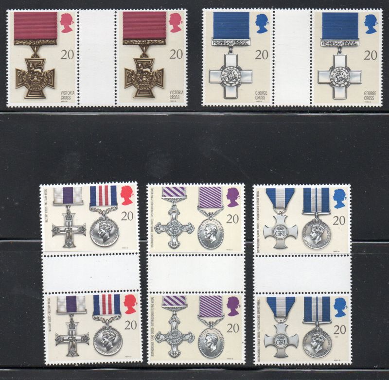 Great Britain Scott Catalogue number 1331-1334 1990 Military Medals stamp set in gutter pairs.Mint, fine to very fine original gum never hinged .Member Canadian Stamp Dealers AssociationCanadian Customers - I pay the GST/HST for you