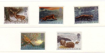 Great Britain Scott Catalogue number 1421-1425 1992 Winter Animals stamp set.