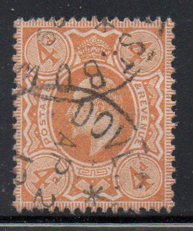Great Britain Scott Catalogue number 144 1910 4 d orange Edward VII stamp .Used, fine .Member Canadian Stamp Dealers AssociationCanadian Customers - I pay the GST/HST for you25-6-107.jpg