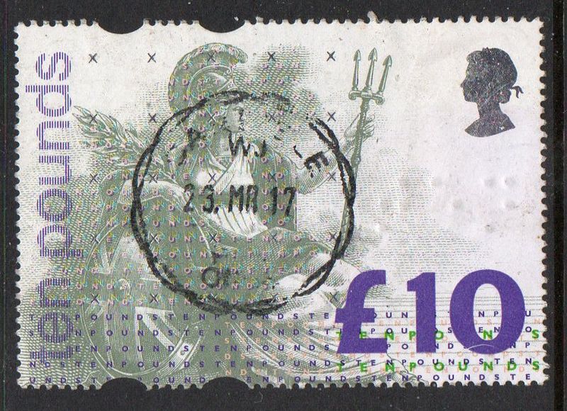Great Britain Scott Catalogue number £10 Britannia stamp .Used, fine to very fine .Member Canadian Stamp Dealers Association .Canadian Customers - I pay the GST/HST on your purchases from me .25-7-6.jpg