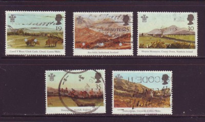 Great Britain Scott Catalogue number 1548-1552 1994 25th Anniversary Investiture of Prince of Wales, Prince Charles Watercolors, stamp set.