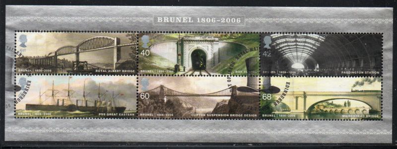 Great Britain Scott Catalogue number 2358a 2006 Isambard Kingdom Brunel Engineering Projects stamp souvenir sheet.Used, fine to very fine .Canadian Customers - no added GST/HSTUS customers - No tariffs on stamps sent by meMember Canadian Stamp Dealers Association