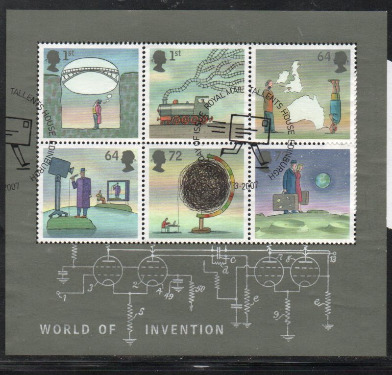 Great Britain Scott Catalogue number 2449a 2007 World of Invention stamp souvenir sheet.Used, fine to very fine .Canadian Customers - no added GST/HSTUS customers - No tariffs on stamps sent by meMember Canadian Stamp Dealers Association