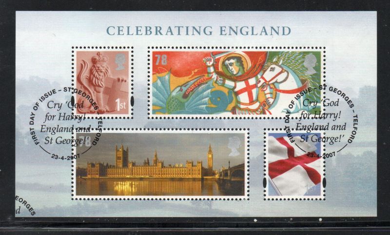Great Britain Scott Catalogue number 2462 2007 Celebrating England stamp souvenir sheet.Used, fine to very fine .Canadian Customers - no added GST/HSTUS customers - No tariffs on stamps sent by meMember Canadian Stamp Dealers Association