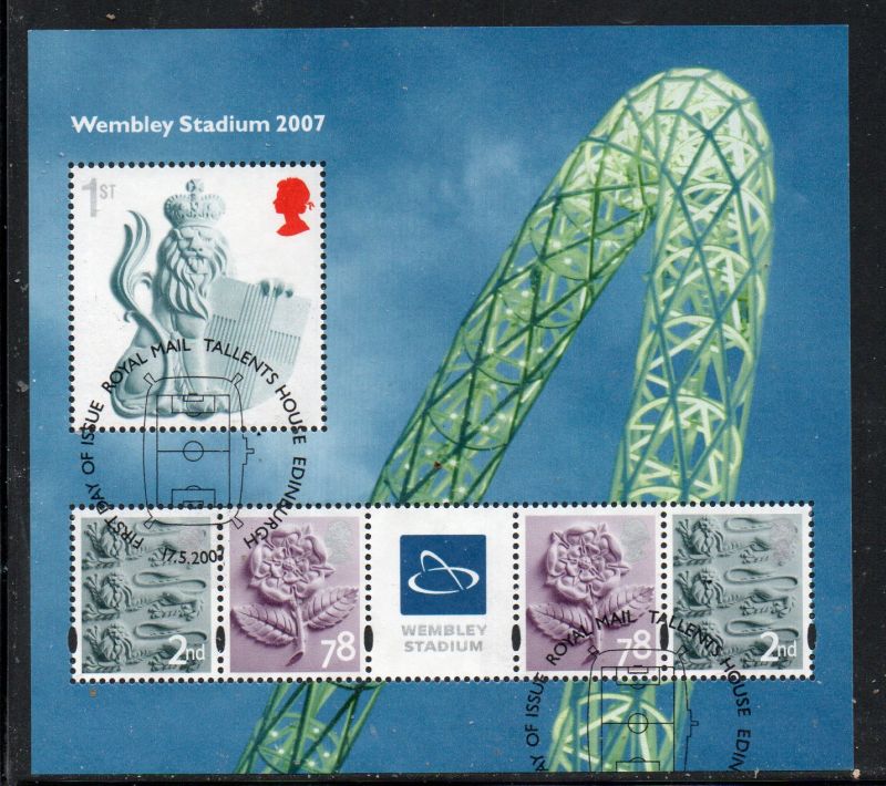 Great Britain Scott Catalogue number 2470 2007 Wembley Stadium stamp souvenir sheet.Used, fine to very fine .Canadian Customers - no added GST/HSTUS customers - No tariffs on stamps sent by meMember Canadian Stamp Dealers Association