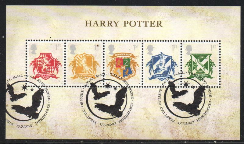 Great Britain Scott Catalogue number 2486 2007 Harry Potter stamp souvenir sheet.Used, fine to very fine .Canadian Customers - no added GST/HSTUS customers - No tariffs on stamps sent by meMember Canadian Stamp Dealers Association