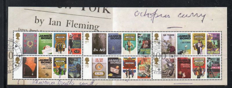 Great Britain Scott Catalogue number 2536a 2008 Ian Fleming James Bond Book Covers stamp souvenir sheet.