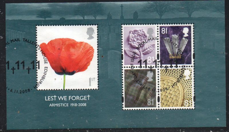 Great Britain Scott Catalogue number 2614 2007 Lest We Forget WW I Armistice stamp souvenir sheet.