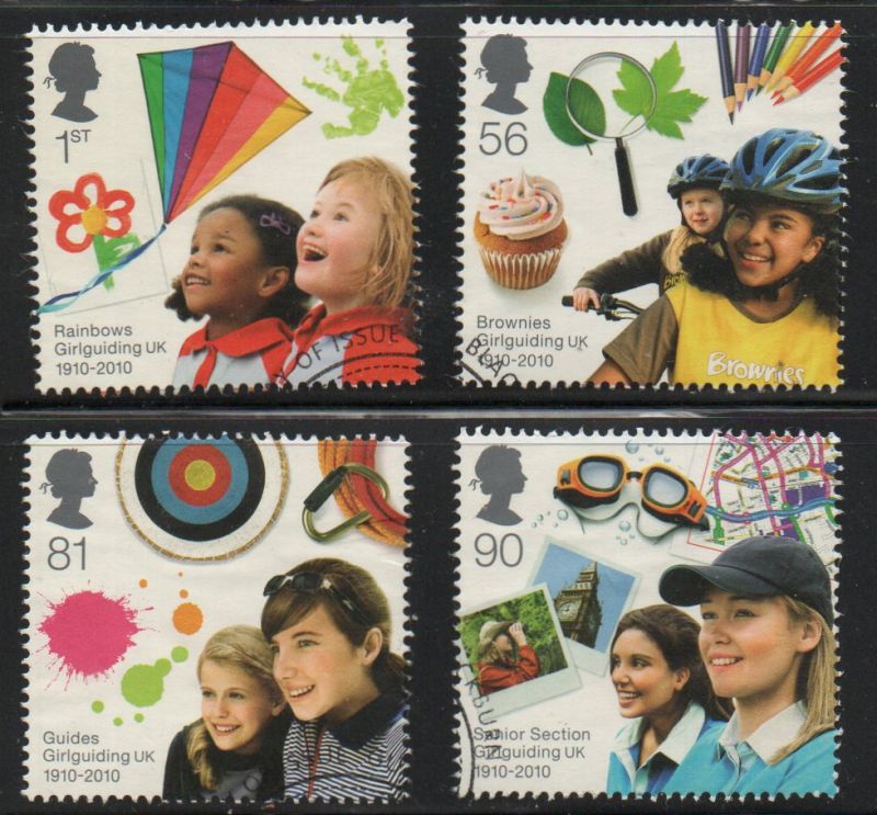 Great Britain Scott Catalogue number 2746a-2746d 100th Anniversary Girl Guides stamp set.Used, fine to very fine .Canadian Customers - no added GST/HSTUS customers - No tariffs on stamps sent by meMember Canadian Stamp Dealers Association
