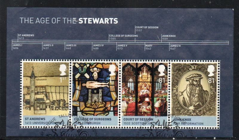 Great Britain Scott Catalogue number 2774 2010 Age of the Stewarts stamp souvenir sheet.Used, fine to very fine .Canadian Customers - no added GST/HSTUS customers - No tariffs on stamps sent by meMember Canadian Stamp Dealers Association