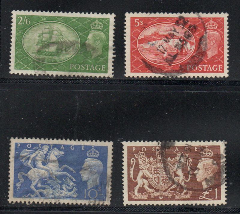 Great Britain Scott Catalogue number 286-289 1951 George VI high values stamp set . Used, fine to very fine .Member Canadian Stamp Dealers Association .Canadian Customers - I pay the GST/HST on your purchases from me .23-11-52.jpg