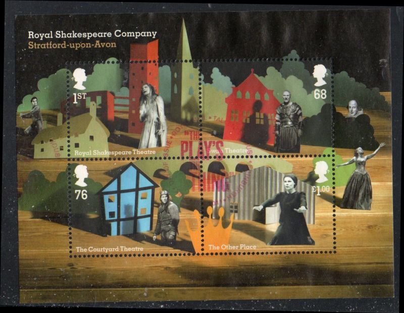 Great Britain Scott Catalogue number 2900 2011 50th Anniversary Royal Shakespeare Company, Stratford-on-Avon, stamp souvenir sheet.