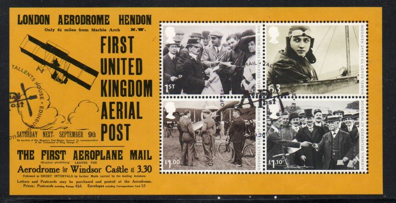 Great Britain Scott Catalogue number 2939 2011 1ooth Anniversary First Air Mail Flight in Britain stamp souvenir sheet.
