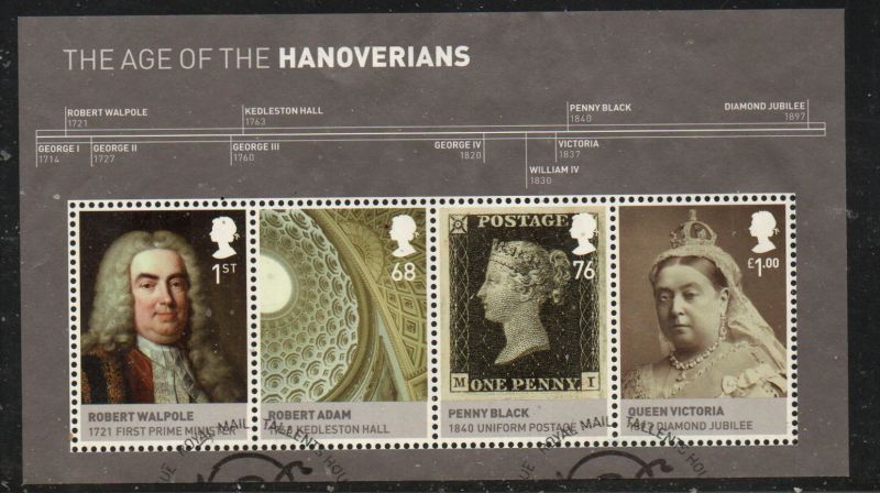 Great Britain Scott Catalogue number 2946 2011 Age of the Hanoverians stamp souvenir sheet.Used, fine to very fine .Canadian Customers - no added GST/HSTUS customers - No tariffs on stamps sent by meMember Canadian Stamp Dealers Association