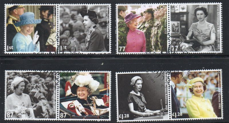 Great Britain Scott Catalogue number 3028-3035 2012 60th Anniversary Reign of QE II stamp set.Used, fine to very fine .Canadian Customers - no added GST/HSTUS customers - No tariffs on stamps sent by meMember Canadian Stamp Dealers Association