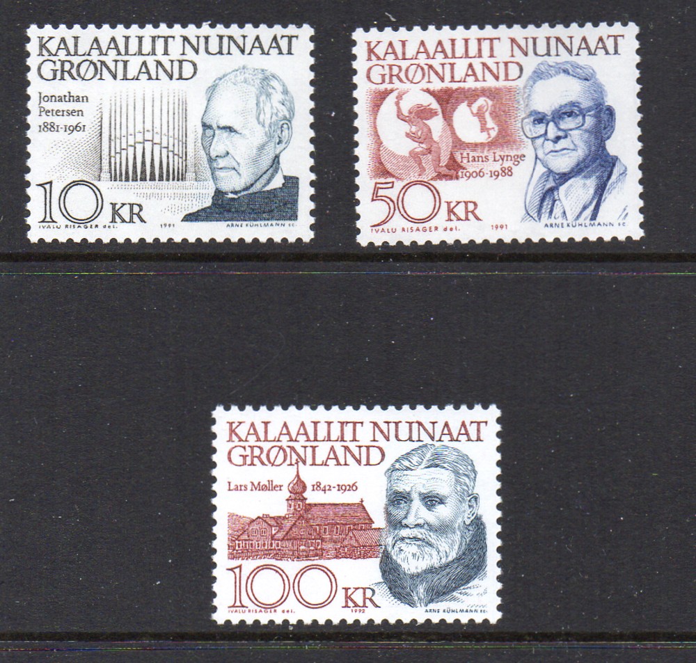 Greenland Scott Catalogue number 242-243, 249 1991-1992 Famous Men High Values stamp set .