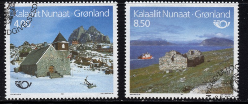 Greenland Scott Catalogue number 259-260 1993 Tourism stamp setUsed, fine to very fine .Canadian Customers - I pay the GST/HST on your purchases from me .Member Canadian Stamp Dealers Association
