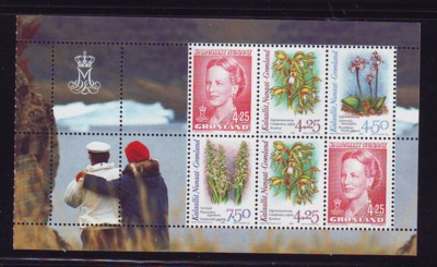 Greenland Scott Catalogue number 283a 199 Queen & Flowers stamp booklet pane .Mint, fine to very fine, original gum never hinged .Canadian Customers - I pay the GST/HST on your purchases from me .