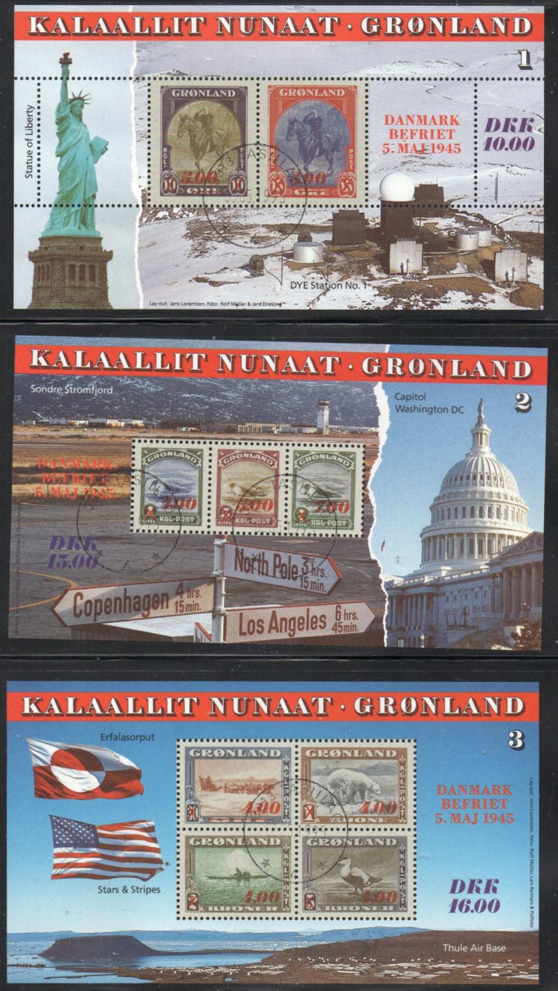 Greenland Scott Catalogue number 293-295 1995 America links stamp souvenir sheets Used fine to very fine.Canadian Customers - I pay the GST/HST on your purchases from me .Member Canadian Stamp Dealers Association25-8-71.jpg
