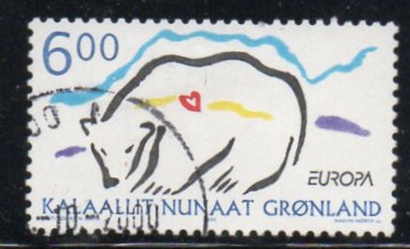 Greenland Scott Catalogue number 348 1999 Europa, Polar Bear, stamp .Used, fine to very fine Member Canadian Stamp Dealers Association . Canadian Customers - I pay the GST/HST on your purchases from me .