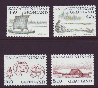 Greenland Scott Catalogue number 351-354 1999 Arctic Vikings stamp set.Mint, fine to very fine, original gum never hinged .Canadian Customers - I pay the GST/HST on your purchases from me .
