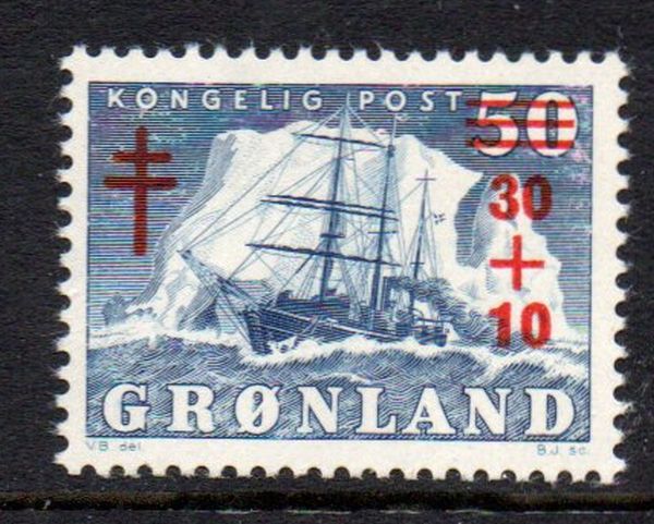 Greenland Scott Catalogue number B1 1958 TB Stamp overprint on ship stamp .Mint, fine to very fine , original gum never hingedMember Canadian Stamp Dealers Association