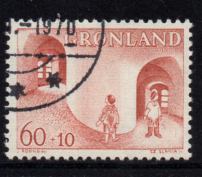 Greenland Scott Catalogue number B3 1968 Child Welfare stamp .Used, fine to very fine .Member Canadian Stamp Dealers Association .Canadian Customers - I pay the GST/HST on your purchases from me .