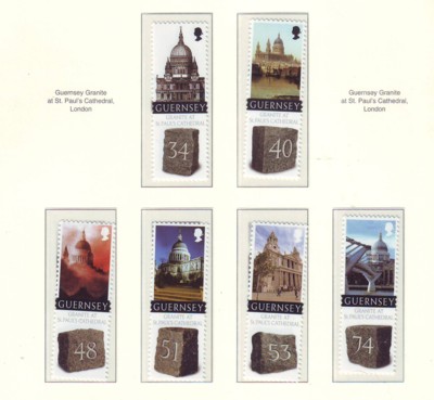 Guernsey Scott Catalogue number 1004-1009 2008 300th Anniversary St Paul's Cathedral, Guernsey Granite, stamp set .