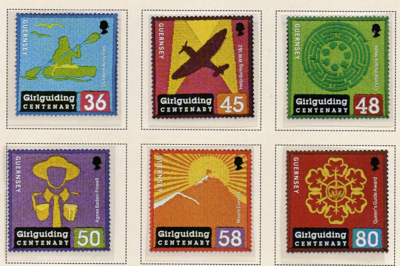 Guernsey Scott Catalogue number 1086-1091 2010  100th Anniversary Girl Guides stamp set .Mint, fine to very fine, original gum never hinged .Member Canadian Stamp Dealers Association .Canadian Customers - I pay the GST/HST on your purchases from me .