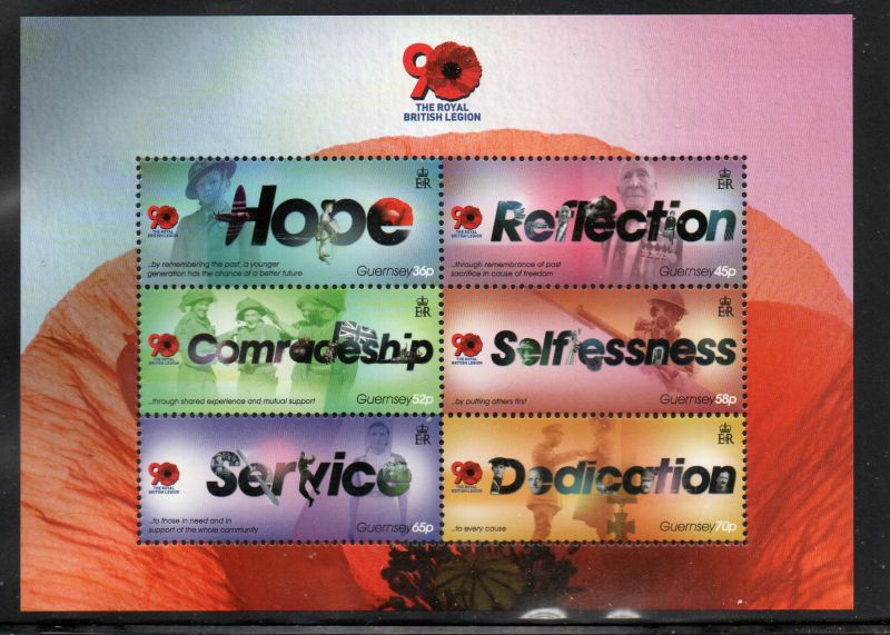 Guernsey Scott Catalogue number 1123a 2011 90th Anniversary Royal British Legion stamp souvenir sheet Mint, fine to very fine, original gum never hinged .Member Canadian Stamp Dealers Association .Canadian Customers - I pay the GST/HST on your purchases from me .