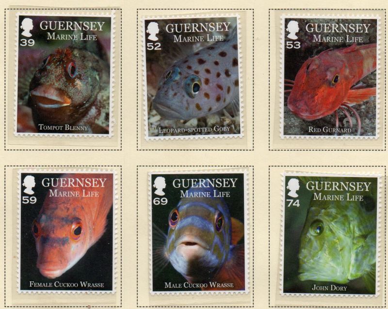 Guernsey Scott Catalogue number 1194-1199 2013 Marine Life stamp set Mint, fine to very fine, original gum never hinged .Member Canadian Stamp Dealers Association .Canadian Customers - I pay the GST/HST on your purchases from me .