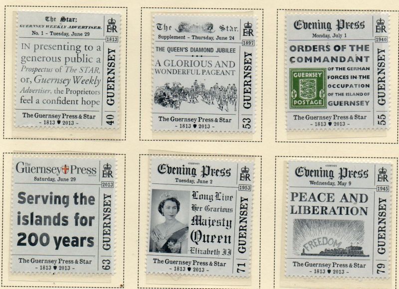 Guernsey Scott Catalogue number 1214-1219 2013 200th Anniversary Guernsey Newspapers stamp set