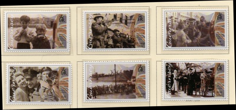 Guernsey Scott Catalogue number  1294-1299 2015 70th Anniversary Liberation stamp set  .Mint, fine to very fine, original gum never hinged .Member Canadian Stamp Dealers Association .Canadian Customers - I pay the GST/HST on your purchases from me .