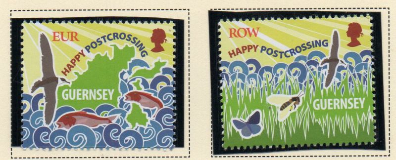 Guernsey Scott Catalogue number 1345-1346 2016 Postcrossing stamp set .Mint, fine to very fine, original gum never hinged .Member Canadian Stamp Dealers Association .Canadian Customers - I pay the GST/HST on your purchases from me .