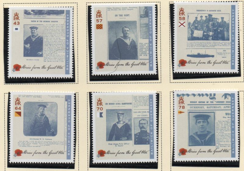 Guernsey Scott Catalogue number 1367-1372 2016 100th Anniversary World War I stamp set .
