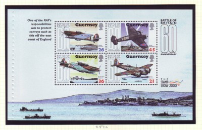 Guernsey Scott Catalogue number 717a 2000 60th Anniversary Battle of Britain stamp booklet pane, 21,26,36 & 45p values